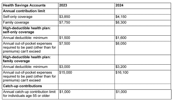 The IRS recently released the 2024 key numbers for contribution limits for health savings accounts (HSAs), as well as the 2024 minimum deductible and maximum out-of-pocket amounts for high-deductible health plans (HDHPs).