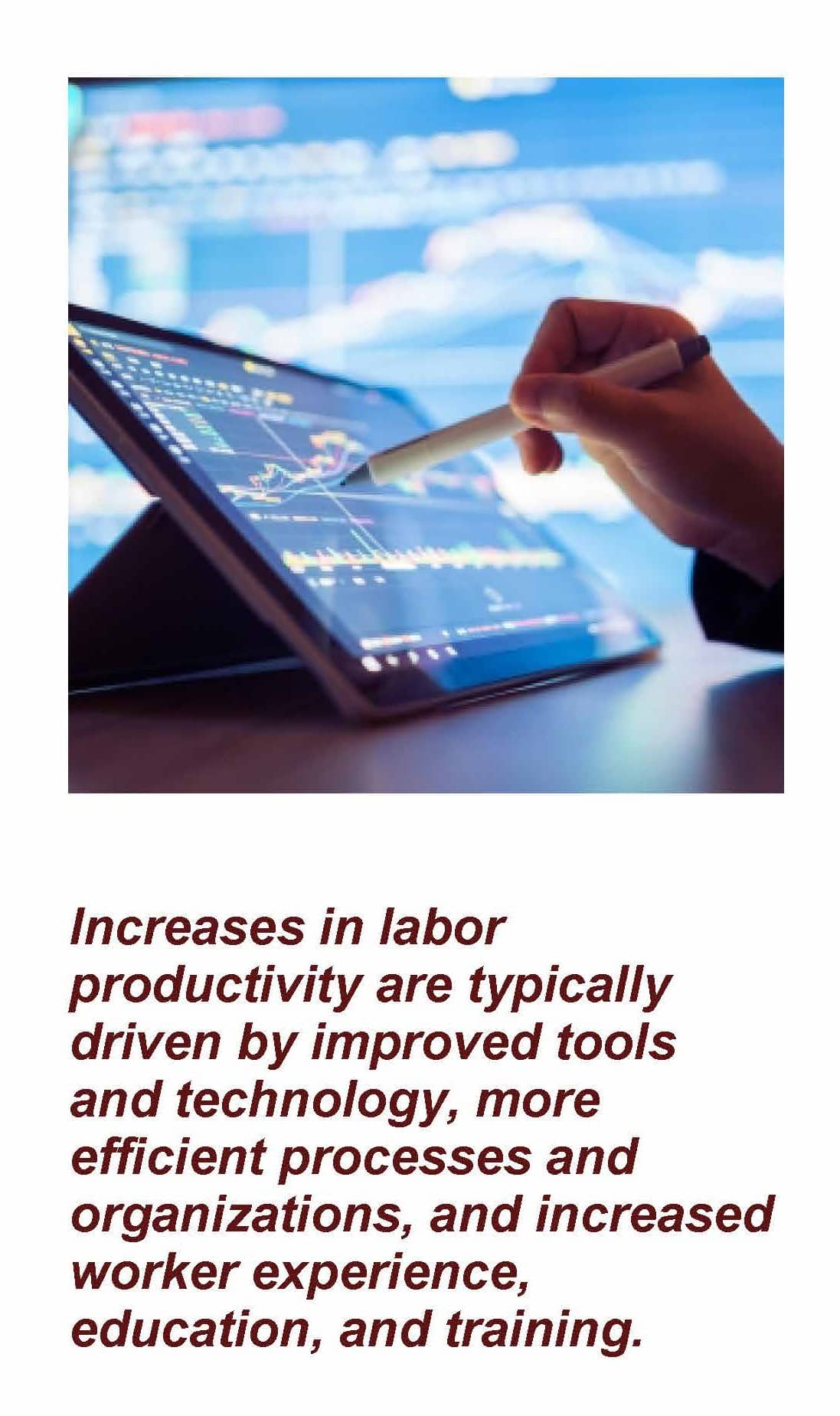 Increases in labor productivity are typically driven by improved tools and technology, more efficient processes and organizations, and increased worker experience, education, and training. The proliferation of computers in the workplace spurred a productivity surge in the 1990s, and some analysts point to artificial intelligence (AI) as contributing to the 2023 increase. It’s possible that AI has already improved some businesses, but any large-scale impact may take years, as businesses integrate AI through worker training and new processes. As this unfolds, AI could help drive a long-term productivity surge.