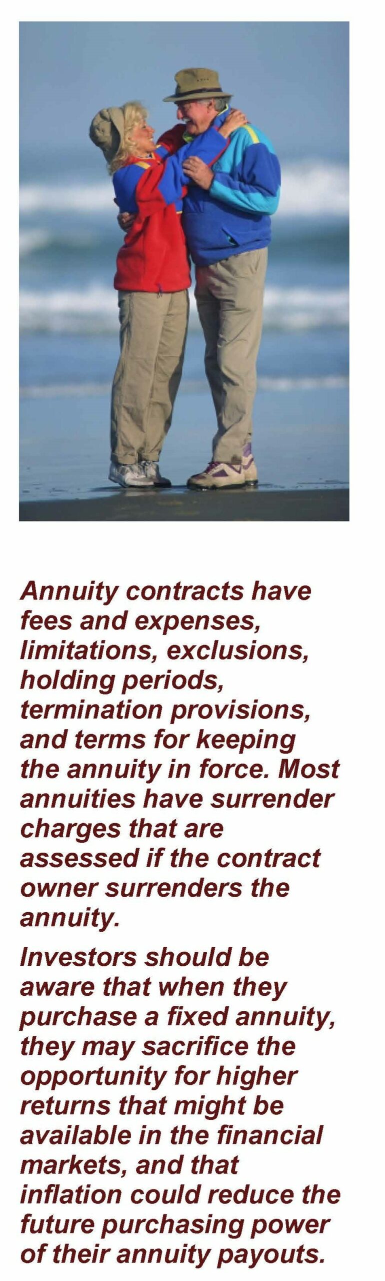 A fixed annuity is a contract between you and an annuity issuer, usually an insurance company. In its simplest form, you pay money to the annuity issuer; the issuer invests the funds and pays the principal and its earnings back to you or to your named beneficiary. What’s fixed about a fixed annuity? The issuer guarantees (subject to its claims-paying ability) a minimum rate of interest on your investment and a fixed benefit amount if you elect to annuitize.
