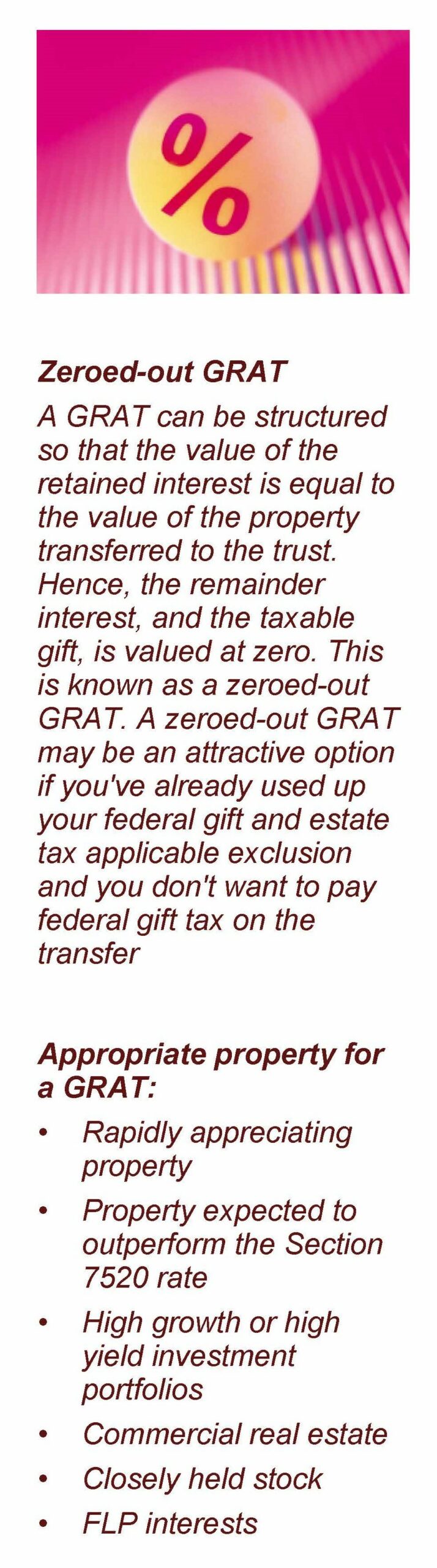 The Section 7520 rate is generally based on current risk-free interest rates. Thus, a GRAT can be especially attractive in a low interest rate environment.