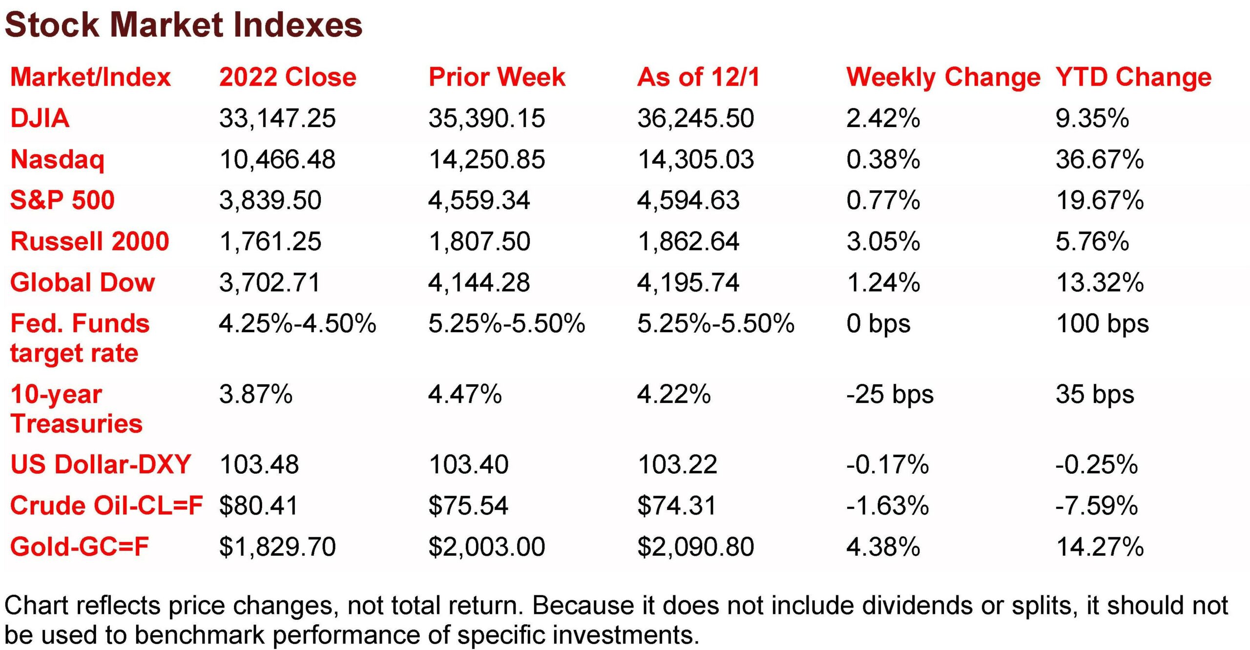 The Markets (as of market close December 1, 2023)