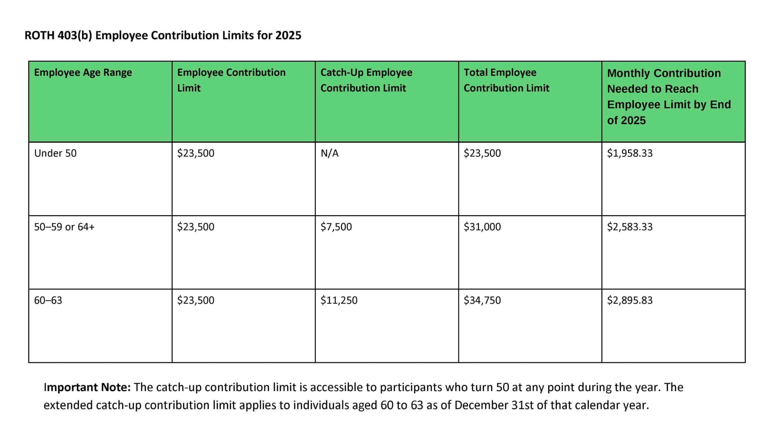 Inclusion of Long-Term, Part-Time Employees: Starting in 2025, 403(b) plans are required to allow long-term, part-time employees to participate. This change ensures that employees who have worked at least 500 hours per year for two consecutive years are eligible to contribute to their employer’s 403(b) plan.